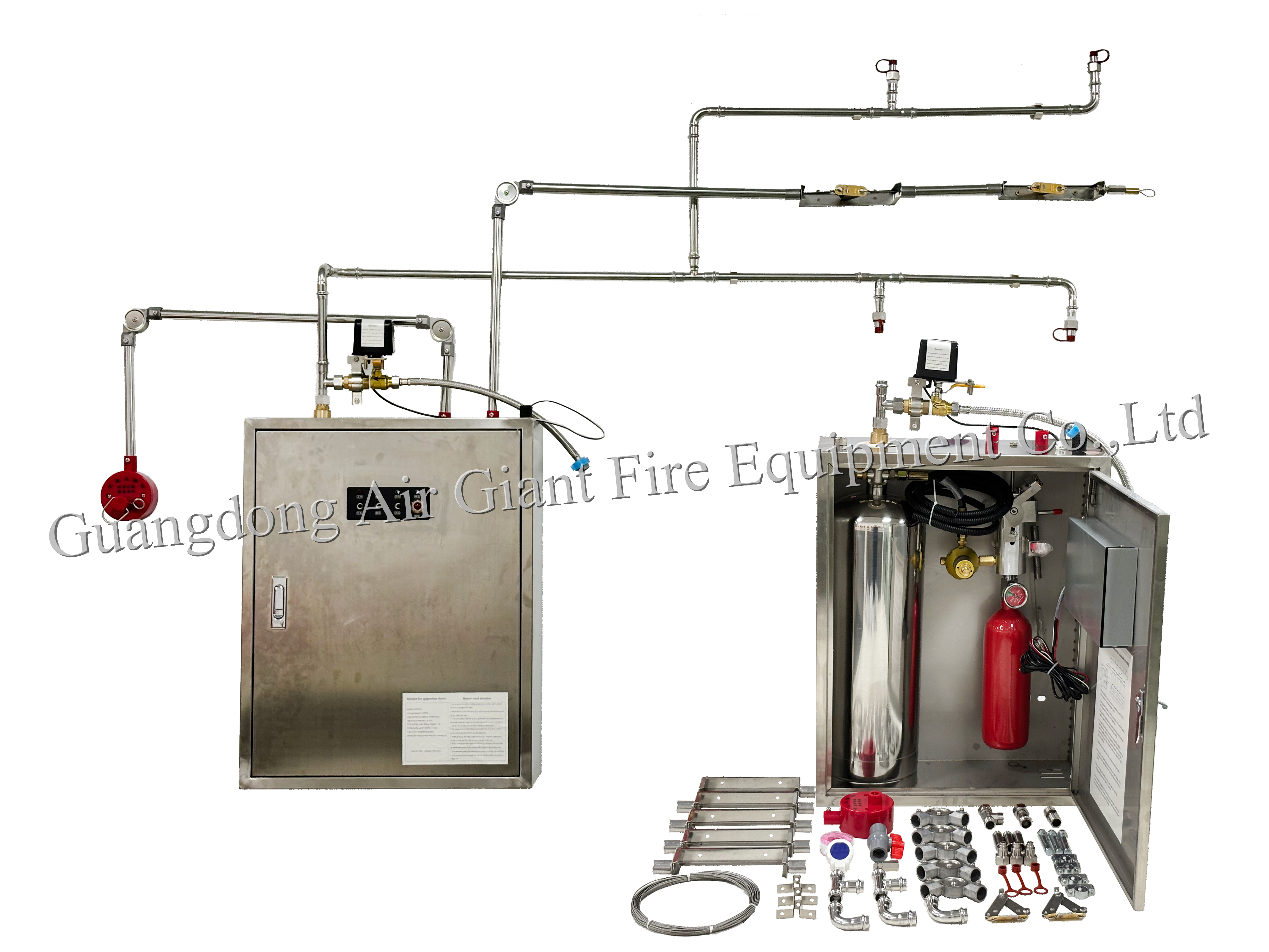 El dispositivo de extinción de incendios de los equipos de cocina es un conjunto completo de dispositivos instalados en ambientes de alta humedad y calor, como cocinas industriales, cocinas comerciales y cocinas civiles,incluidos: