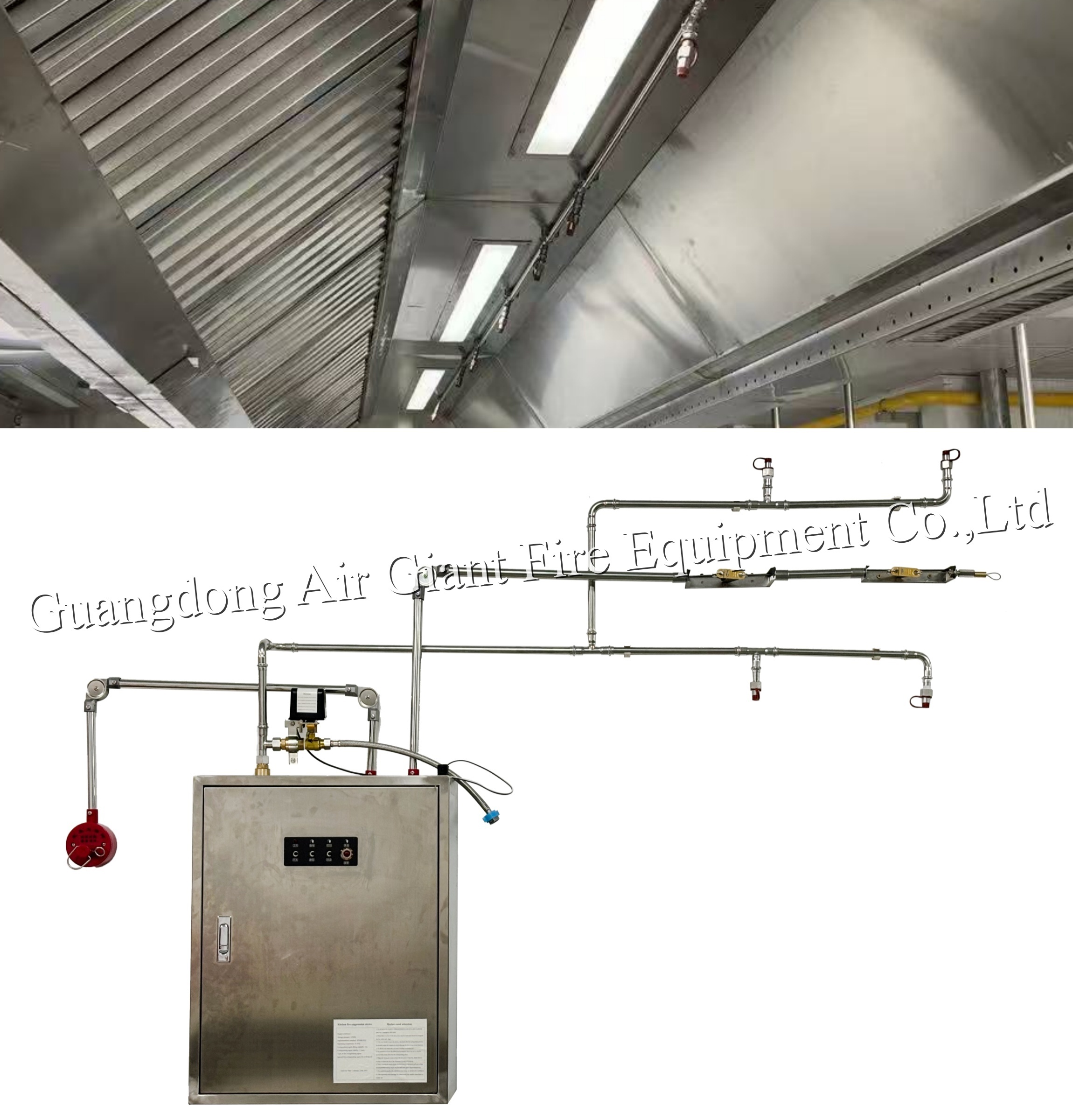 Kitchen Equipment Fire Suppression Device is mainly used at the following site: hotel, restaurant kitchen, the catering center of the stadium, large/medium/small restaurant, fast food restaurant, the catering center of the airport, the kitchen of the office and hospital, large office building restaurant, the kitchen of industrial and mining enterprises, college canteen and so on.